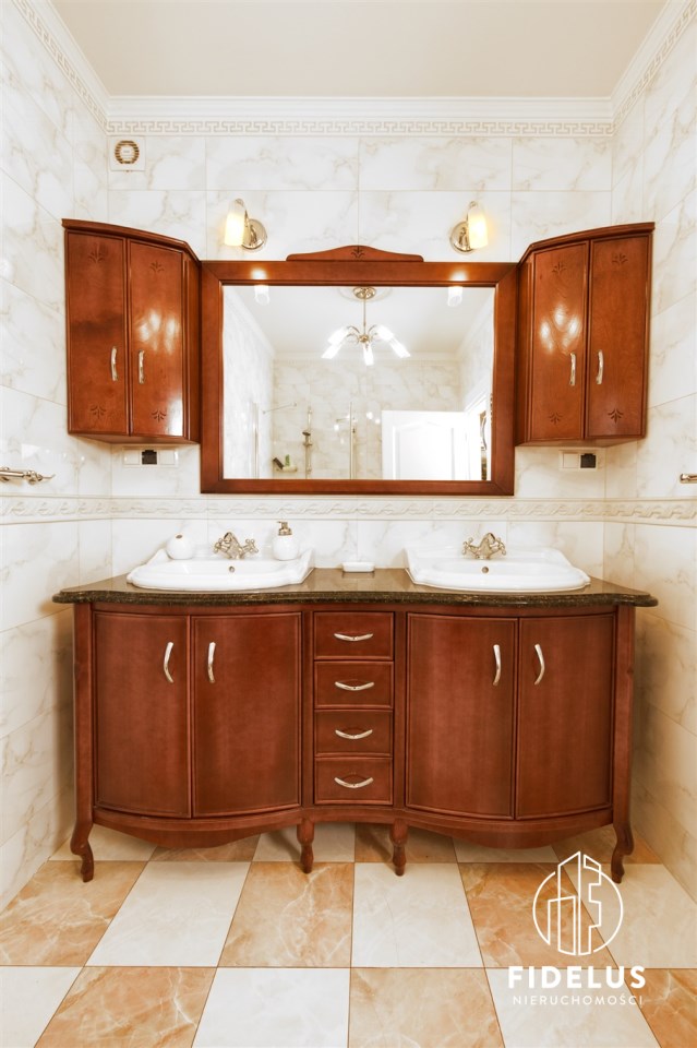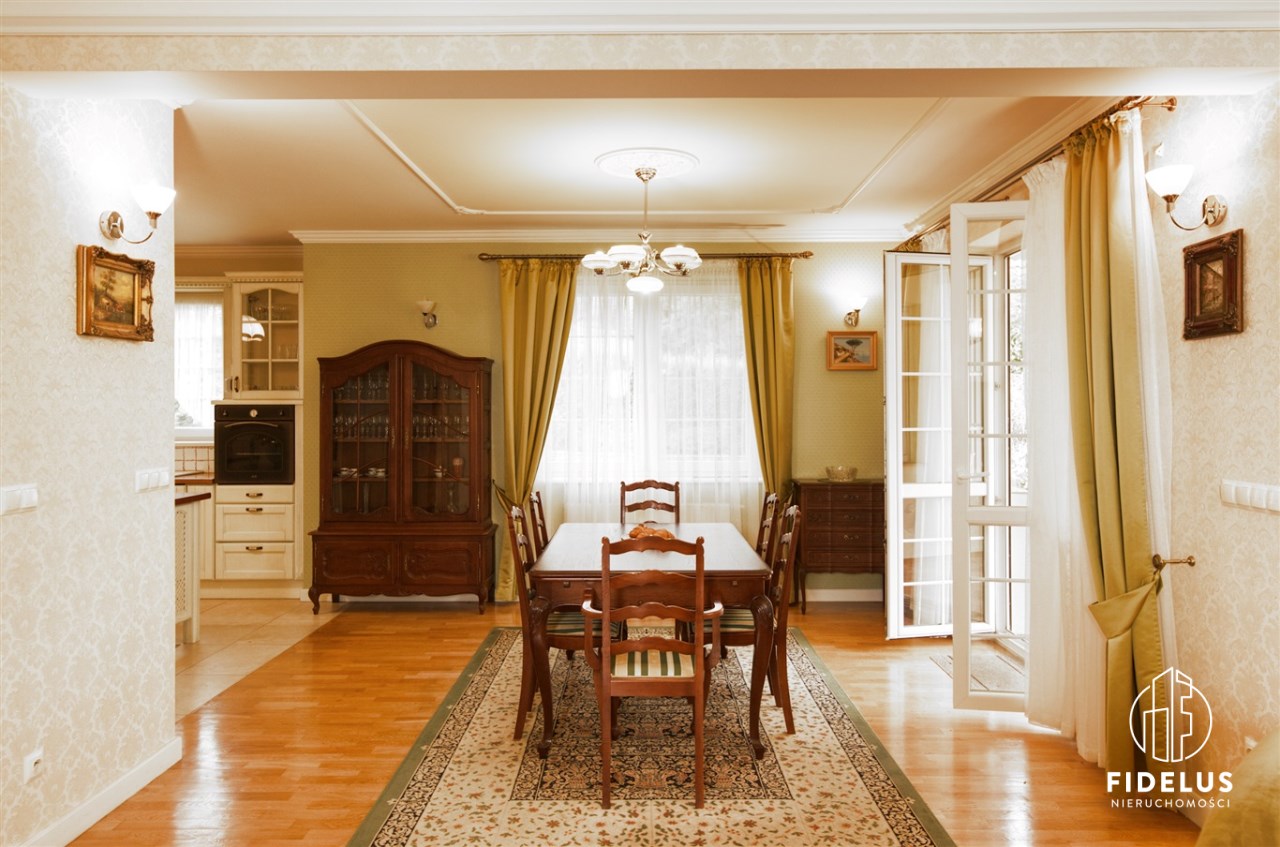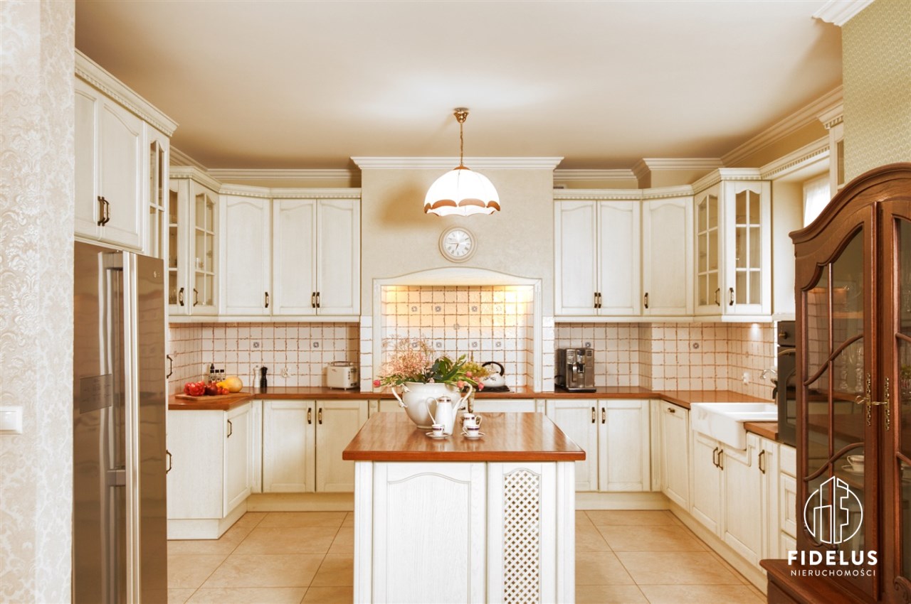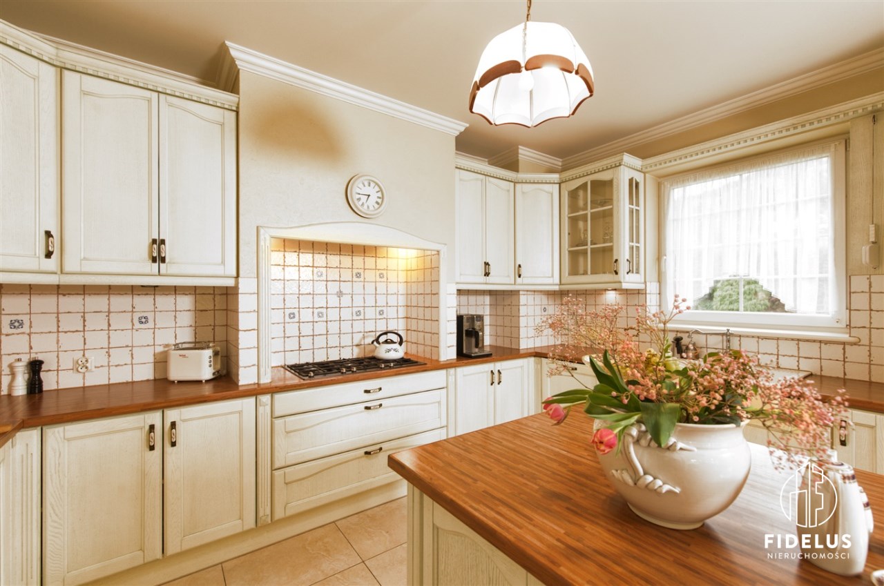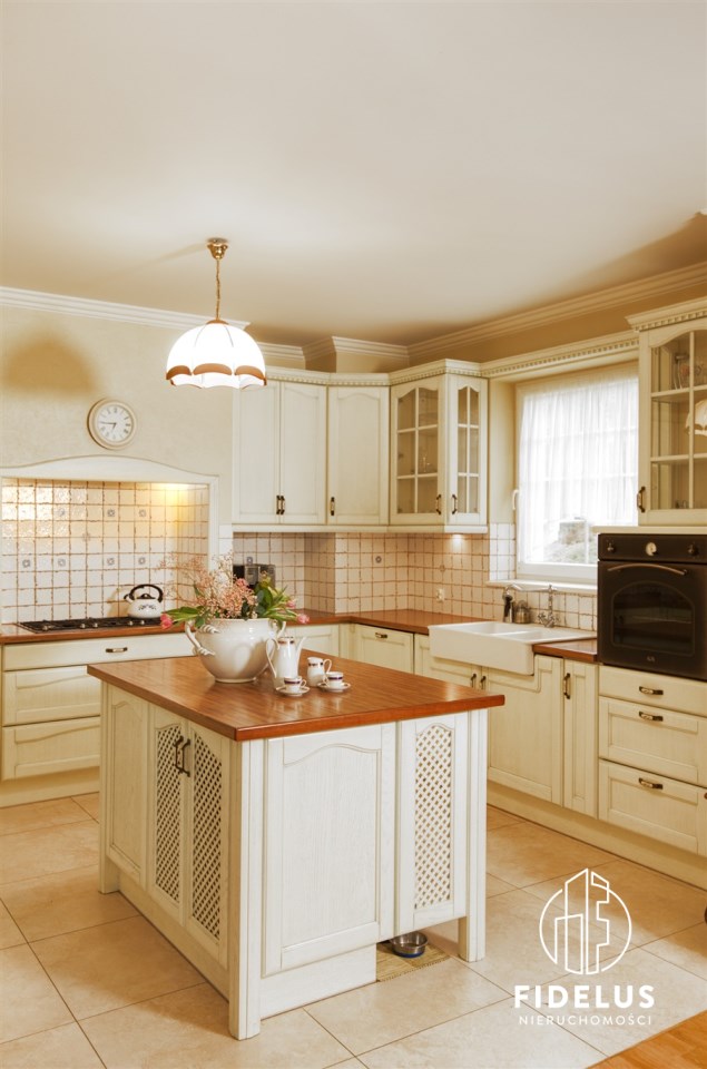 Wnętrza zachwycają przytulnością, spójnością i ponadczasowym stylem. Na podłogach parkiet z naturalnego drewna, a w kuchni i łazienkach – wysokiej jakości gres i terakota. Meble wykonane na wymiar z drewna , zasłony szyte na miarę ze szlachetnych materiałów