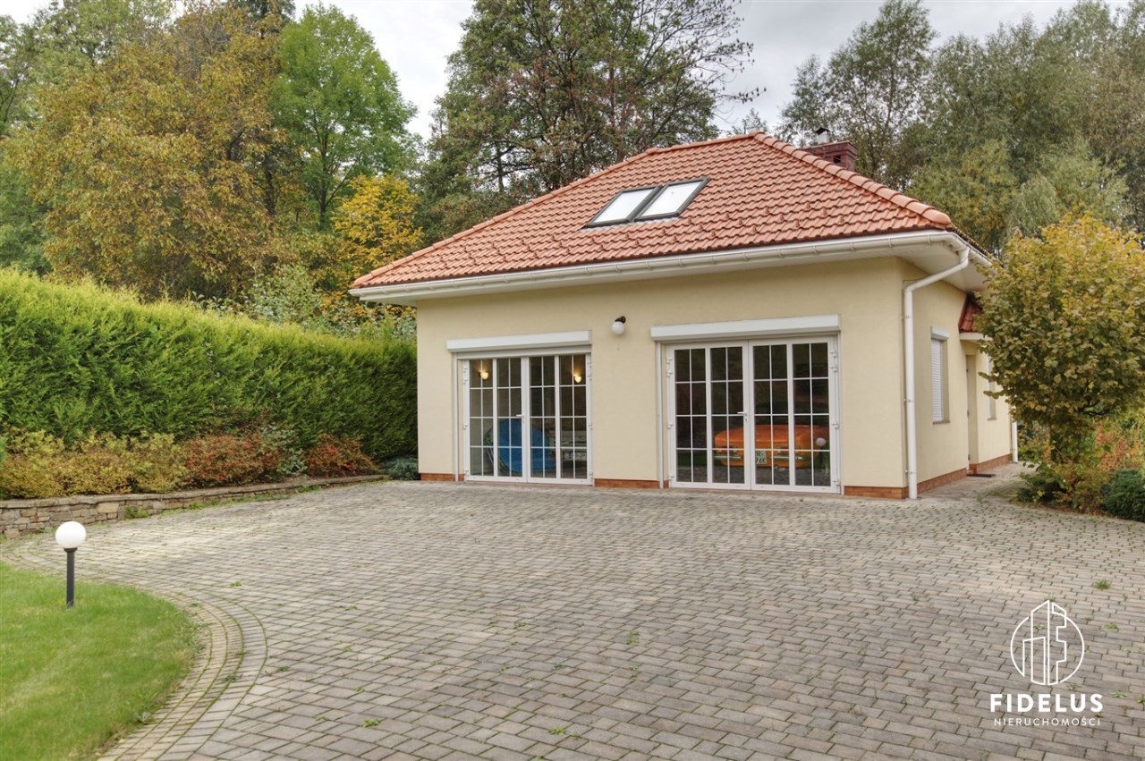 Na posesji znajduje się niezależny domek wolnostojący, idealny jako przestrzeń dla gości lub na prowadzenie działalności gospodarczej.