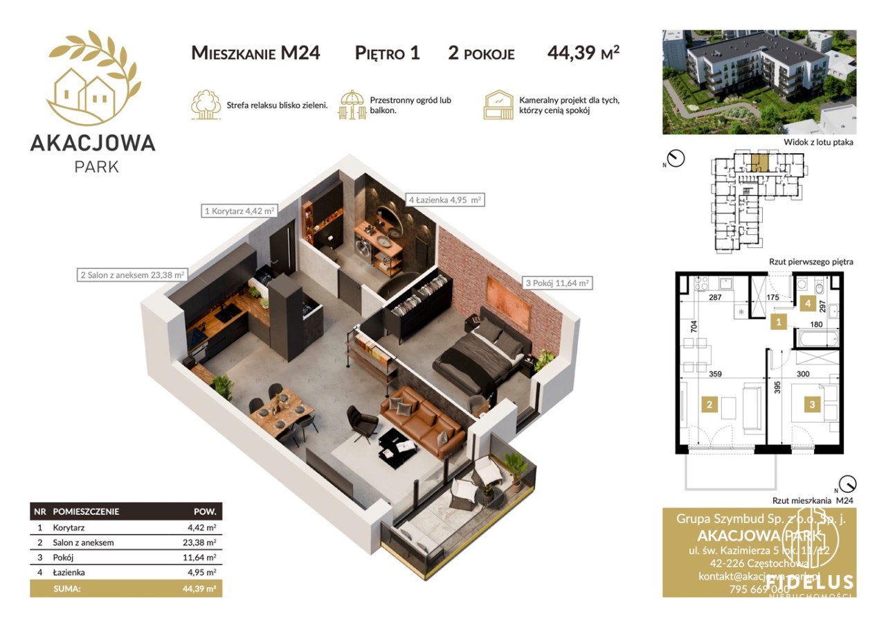 Akacjowa Park to kameralna inwestycja mieszkaniowa realizowana przez Grupę SZYMBUD – doświadczonego dewelopera z 13 zakończonymi projektami i ponad 600 przekazanymi mieszkaniami m.in. w Częstochowie i Cieszynie.