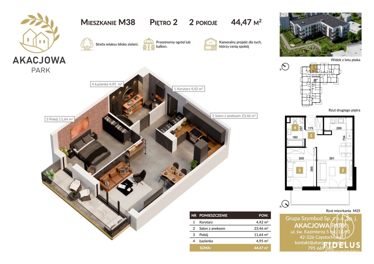 Akacjowa Park to kameralna inwestycja mieszkaniowa realizowana przez Grupę SZYMBUD – doświadczonego dewelopera z 13 zakończonymi projektami i ponad 600 przekazanymi mieszkaniami m.in. w Częstochowie i Cieszynie.