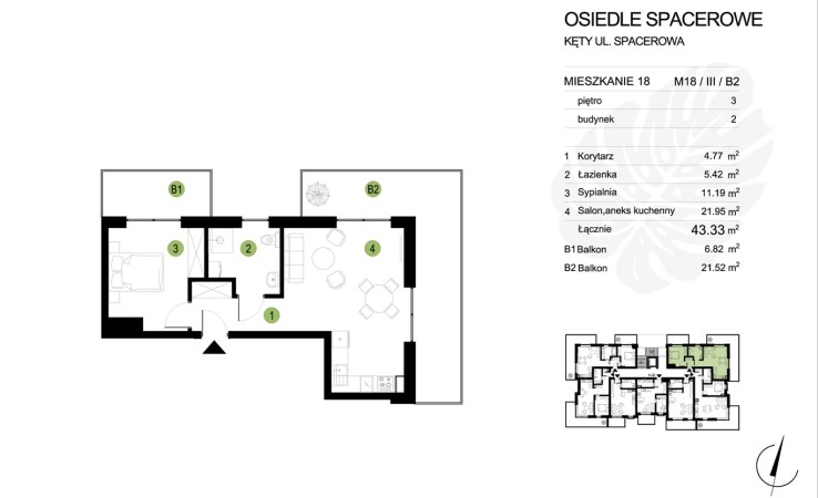 Kameralna inwestycja, składająca się z trzech wolnostojących budynków, stanowi kontynuację przedsięwzięcia firmy Invest Dom w tej wyjątkowej lokalizacji. Największym atutem osiedla jest jego położenie – w otoczeniu zieleni, z widokiem na góry Beskidu, a jednocześnie z doskonałym dostępem do infrastruktury miejskiej, takiej jak sklepy, szkoły, przedszkola oraz ścieżki rowerowe. Inwestycja zapewnia również szybki dostęp do głównych dróg wylotowych miasta.