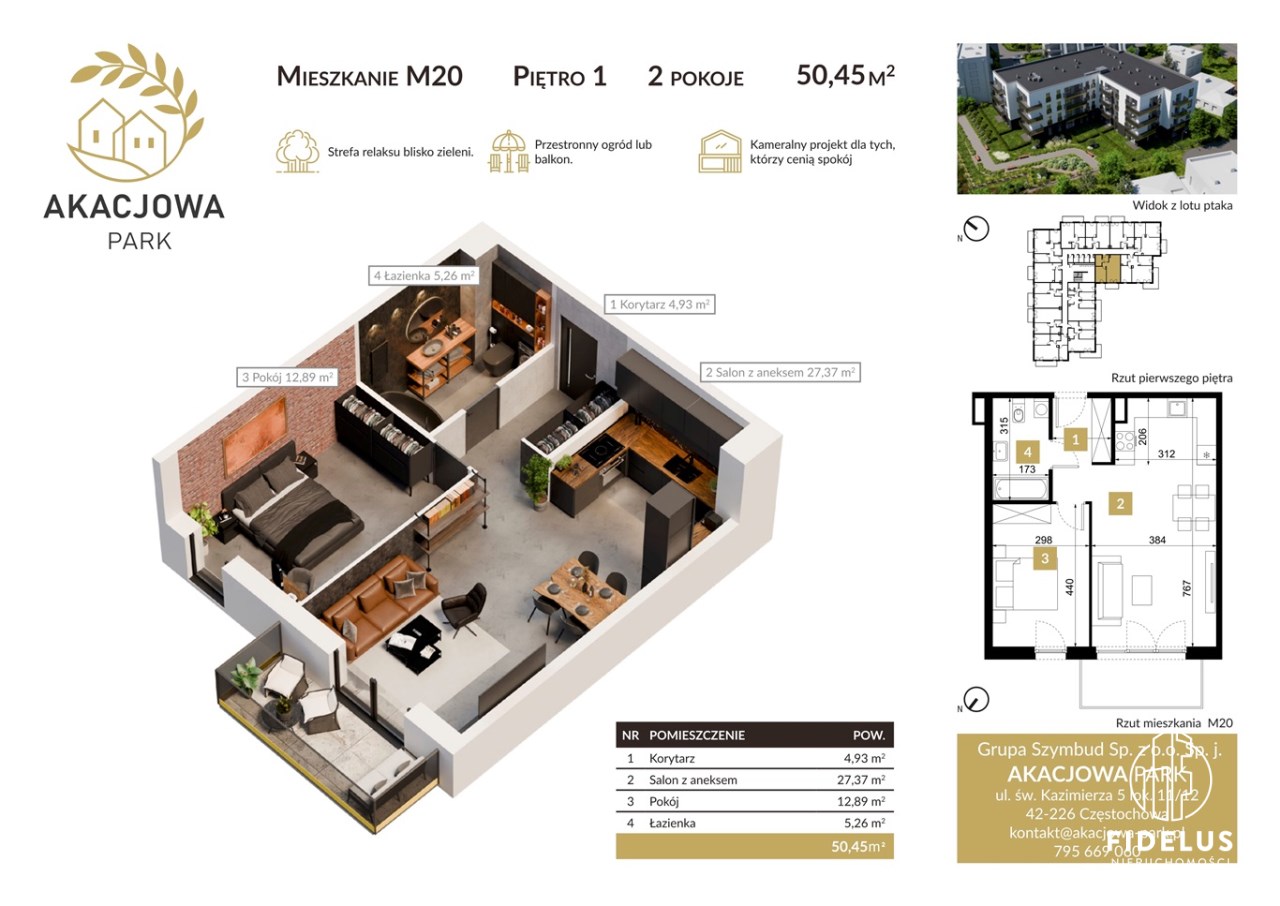 Akacjowa Park to kameralna inwestycja mieszkaniowa realizowana przez Grupę SZYMBUD – doświadczonego dewelopera z 13 zakończonymi projektami i ponad 600 przekazanymi mieszkaniami m.in. w Częstochowie i Cieszynie.