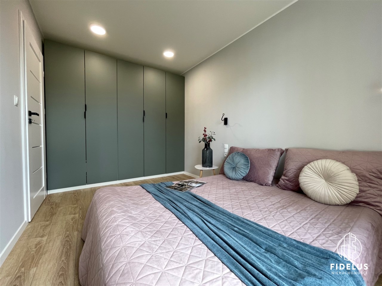 - sypialnia z nowoczesną, pojemną szafą wykonaną na wymiar,