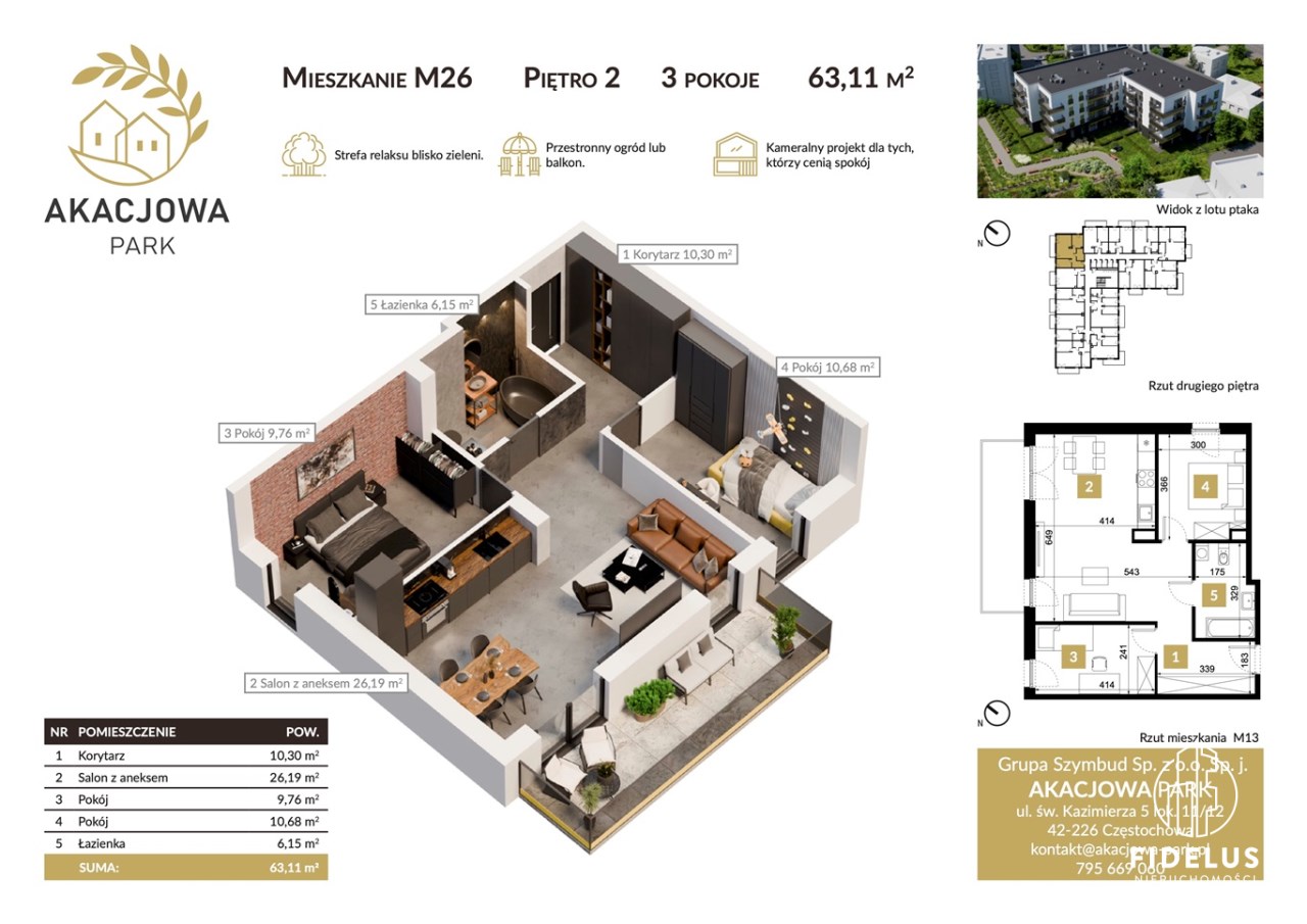 Akacjowa Park to kameralna inwestycja mieszkaniowa realizowana przez Grupę SZYMBUD – doświadczonego dewelopera z 13 zakończonymi projektami i ponad 600 przekazanymi mieszkaniami m.in. w Częstochowie i Cieszynie.