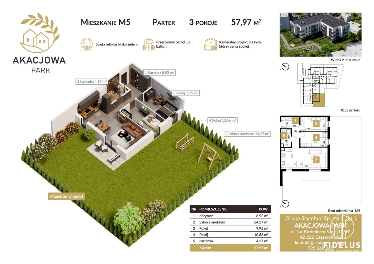Akacjowa Park to kameralna inwestycja mieszkaniowa realizowana przez Grupę SZYMBUD – doświadczonego dewelopera z 13 zakończonymi projektami i ponad 600 przekazanymi mieszkaniami m.in. w Częstochowie i Cieszynie.