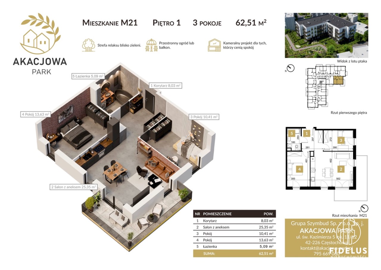 Akacjowa Park to kameralna inwestycja mieszkaniowa realizowana przez Grupę SZYMBUD – doświadczonego dewelopera z 13 zakończonymi projektami i ponad 600 przekazanymi mieszkaniami m.in. w Częstochowie i Cieszynie.