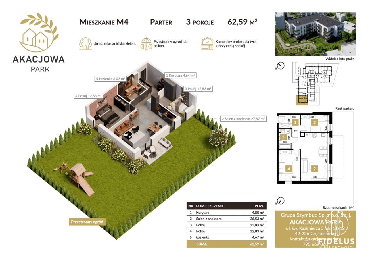 Akacjowa Park to kameralna inwestycja mieszkaniowa realizowana przez Grupę SZYMBUD – doświadczonego dewelopera z 13 zakończonymi projektami i ponad 600 przekazanymi mieszkaniami m.in. w Częstochowie i Cieszynie.