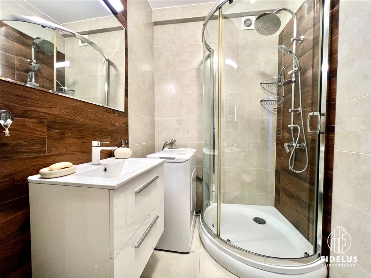 salon z wygodną sofą sypialnia z dużym łóżkiem, pojemną szafą oraz biurkiem, łazienka z prysznicem i WC (wyposażona w pralkę) przedpokój z szafą na odzież wierzchnią,