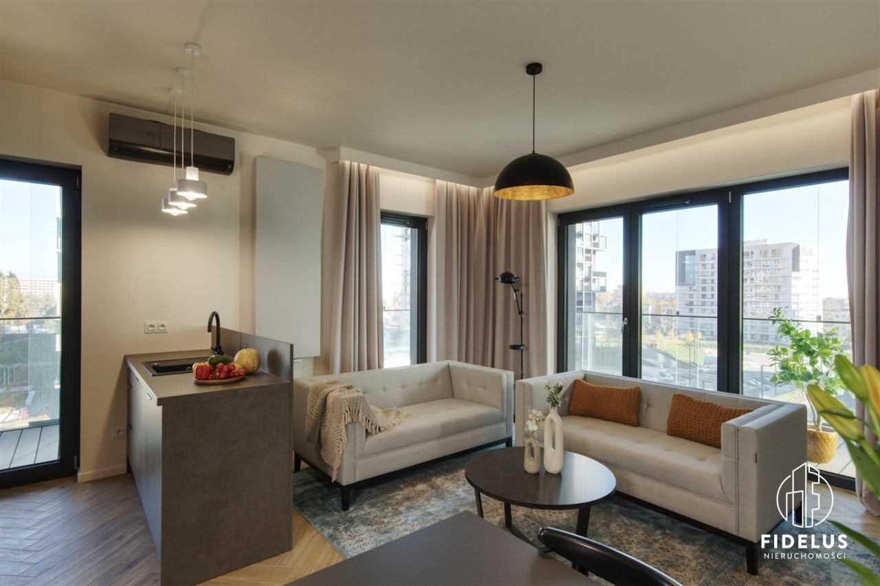 Na wynajem nowoczesny, w pełni wyposażony apartament o powierzchni 67,8 m², położony na III piętrze prestiżowej inwestycji Pierwsza Dzielnica w samym sercu Katowic – tuż obok NOSPR, Spodka i MCK.