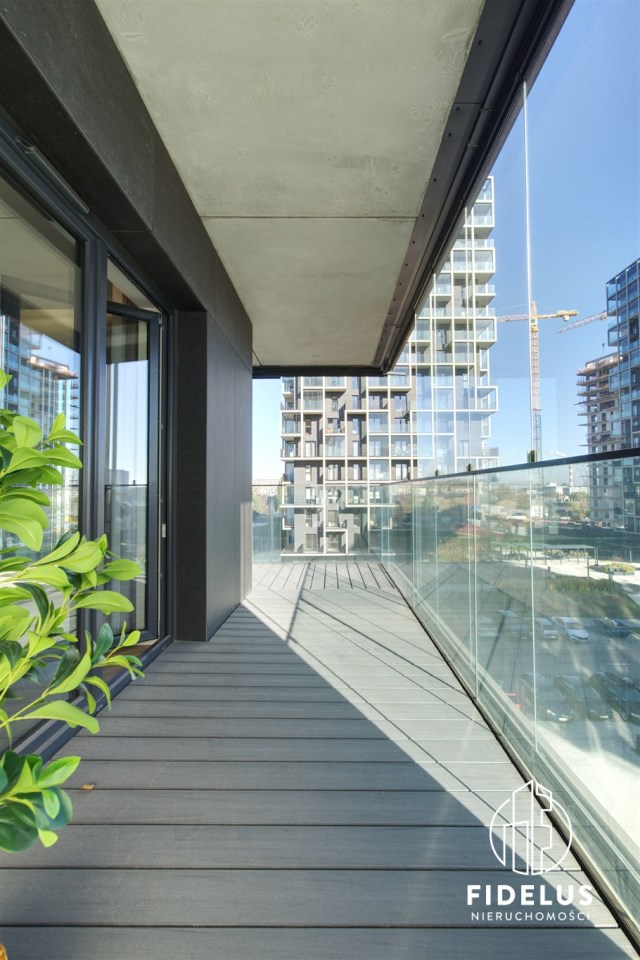 Duże przeszklenia zapewniają świetne doświetlenie oraz panoramiczny widok na miasto. Loggia wyposażona jest w system przesuwnych szyb chroniących przed wiatrem.