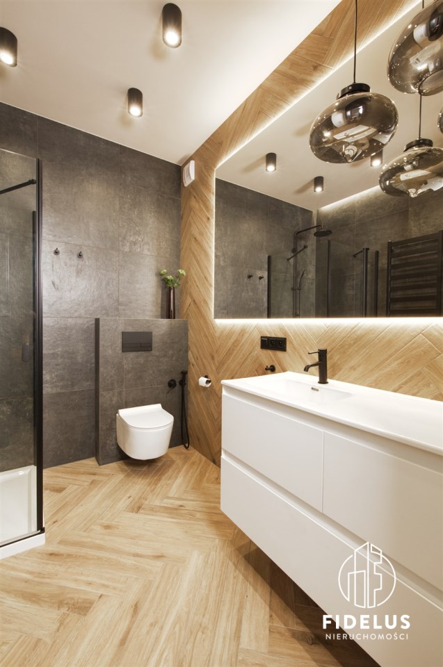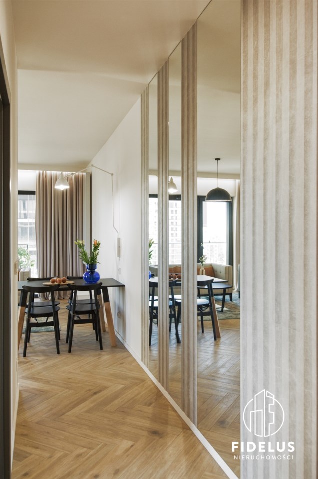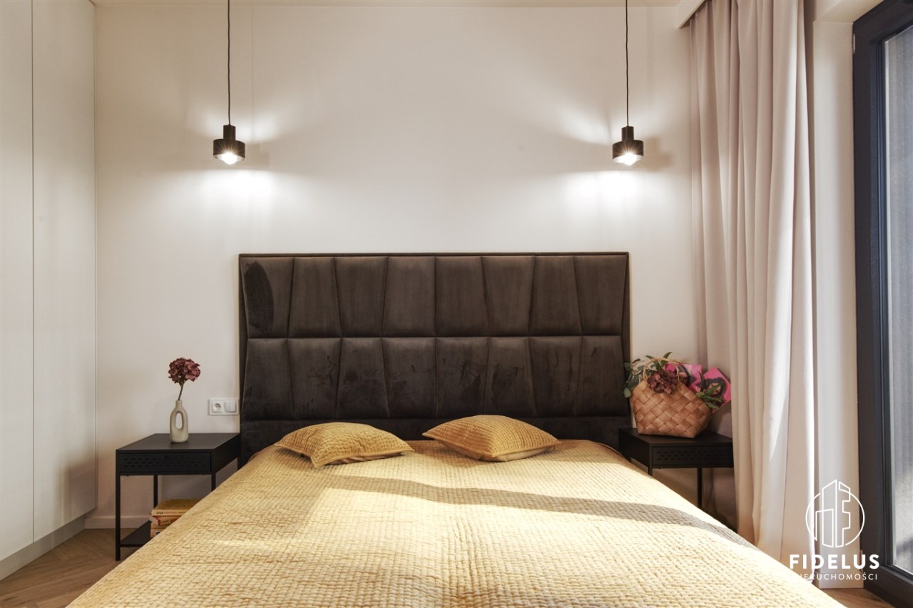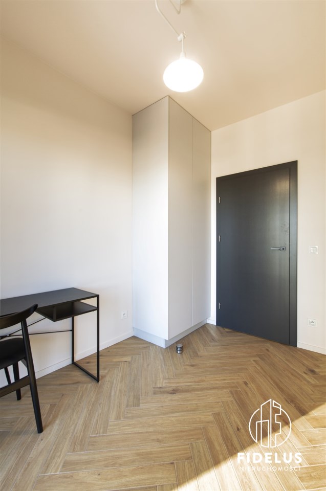 Mieszkanie zostało urządzone według projektu architekta – w stonowanej, eleganckiej kolorystyce. Wysokiej jakości zabudowy stolarskie i sprzęt AGD renomowanych marek (piekarnik, zmywarka, płyta indukcyjna, pralka, suszarka).